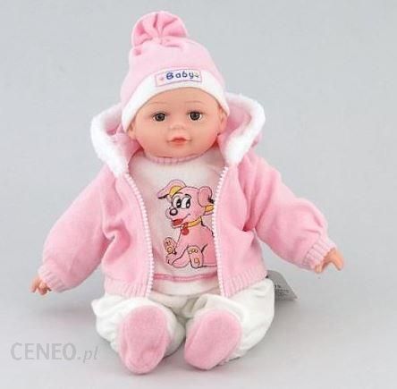LALKA BOBAS 35CM Z DŹWIĘKIEM 417717Lalka bobas o długości 35 cm z dźwiękami. W zestawie ze smoczkiem.Ubrana jest w: białe body z pieskiem, różową czapkę, różową bluzę z kapturem i suwakiem, różowe skarpetki.Kod EAN: 5901271417717Kod towaru: LAL7717