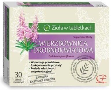 Wierzbownica drobnokwiatowa pomaga utrzymać normalny przepływ moczu oraz zmniejszyć częstotliwość oddawania moczu u mężczyzn. Ziele wierzbownicy drobnokwiatowej wspomaga utrzymanie ruchomości i elastyczności stawów, a także pomaga chronić komórki przed uszkodzeniem oksydacyjnym. Wspomaga dobre samopoczucie fizyczne. Składniki: substancja wypełniająca: celuloza, wyciąg z ziela wierzbownicy drobnokwiatowej (wyciąg z ziela wierzbownicy drobnokwiatowej, skrobia ziemniaczana), substancja przedwzbrylająca: sole magnezowe kwasów tłuszczowych, substancja wypełniająca: sol sodowa karboksymetylocelulozy usieciowiona, substancja przeciwzbrylająca: dwutlenek krzemu; substancje glazurujące: sorbitole, kwasy tłuszczowe, guma arabska, karagen. Składniki Zawartość w 1 tabletce Wyciąg z ziela wierzbownicy w przeliczeniu na suszoną wierzbownicę 680 mg Zawartość wyciągu z ziela wierzbownicy 170 mg Stosowanie: 1 tabletka 2 razy dziennie.