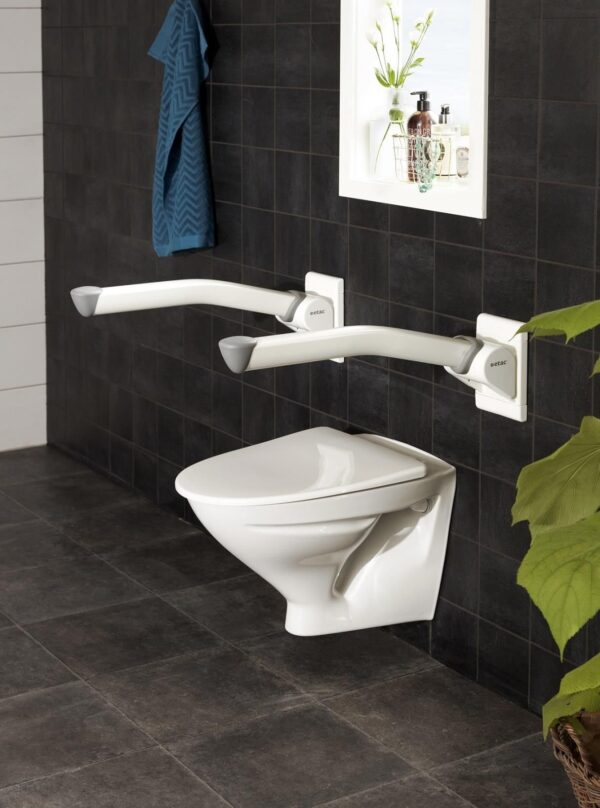 Etac Rex – poręcz ułatwiająca korzystanie z toalety Poręcz Etac Rex to połączenie ergonomii, wzornictwa i funkcjonalności. Uchwyty Etac Rex podnoszą bezpieczeństwo oraz są idelanym dodatkiem dekoracyjnym do każdej łazienki. Funkcjonalnosć: Idealny kształt dopasowany do dłoni i kciuka Antypoślizgowa powierzchnia Wykonana z trwałego i wytrzymałego tworzywa (wypełniona aluminium) Składana – zajmuje niewiele miejsca Maksymalna waga użytkownika 135 kg. Maksymalna waga użytkownika dla poręczy z nóżką 150 kg.