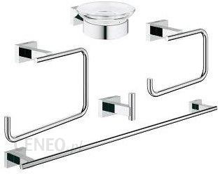 GROHE 40758001 Essentials Cube Zestaw akcesoriów łazienkowych 5 w 1Essentials CubeZestaw akcesoriów łazienkowych 5 w 1materiał: szkło / metalelementy składowe:mydelniczka z uchwytem (40 754 001)wieszak na ręcznik 558 mm (40 509 001)uchwyt na papier toaletowy (40 507 001)wieszak (40 511 001)wieszak na ręcznik (40 510 001)ukryte mocowaniepowłoka chromowa GROHE StarLight