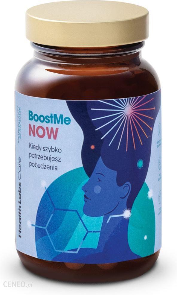 Kiedy potrzebujesz szybkiego pobudzenia wypróbuj BoostMe NOW! To suplement diety, dzięki któremu odsuniesz zmęczenie i senność, usprawnisz pamięć i koncentrację, zyskasz siłę i energię do działania. Sup wspiera procesy uczenia się i zapamiętywania. BoostMe Now jest jedynym jak dotąd produktem w Polsce, który łączy składniki wspierające syntezę dopaminy (neuroprzekaźnika odpowiedzialnego za motywację i chęć działania), m.in. NALT ze związkami zwiększającymi zasoby energetyczne organizmu, wspierającymi pamięć oraz usuwającymi uczucie zmęczenia: Alpha‑GPC, kofeiną i teakryną. Suplement, który w krótkim czasie zwiększy poziom energii, bezpiecznie pobudzi i odsunie uczucie senności. Tak właśnie działa BoostMe Now.Zalecane stosowanie: 2 kapsułki dziennie – w pierwszej połowie dnia (stosuj doraźnie 2‑3 razy w tygodniu).Nie należy przekraczać zalecanej dziennej porcji. Zrównoważony sposób żywienia i prawidłowy tryb życia jest ważny dla funkcjonowania organizmu człowieka. Suplement diety nie może być stosowany jako substytut (zamiennik) zróżnicowanej diety.Składniki: Alfosceran choliny, substancja glazurująca: hydroksypropylometyloceluloza, kofeina, suchy ekstrakt z liści zielonej herbaty (Camellia sinensis (L.) Kuntze) zawierający 98% L‑teaniny, N‑acetylo L‑tyrozyna, suchy ekstrakt z liści herbaty assamskiej (Camellia sinensis var. assamica (J. Masters) Kitam.) zawierający 99% teakryny, substancja przeciwzbrylająca: dwutlenek krzemu.Przechowywanie: W szczelnie zamkniętym opakowaniu, w temperaturze pokojowej 15‑25° C, w suchym miejscu, w sposób niedostępny dla małych dzieci. Chronić od wilgoci i światła.Środki ostrożności: Nie stosować w przypadku nadwrażliwości na którykolwiek ze składników. Zawiera kofeinę – 200 mg w 2 kapsułkach; nie zaleca się stosowania u dzieci i kobiet w ciąży; nie spożywać z innymi produktami będącymi źródłem kofeiny lub innych składników o podobnym działaniu.