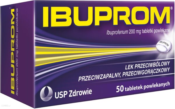IBUPROM REGULAR 50 tabl.Jest silnym lekiem przeciwbólowym i przeciwzapalnym, który precyzyjnie lokalizuje źródło bólu, jakim często jest stan zapalny i na nim koncentruje swoją siłę działania. Dzięki temu szybko zwalcza różnego rodzaju bóle. Zalecany w szczególności przy bólach menstruacyjnych, bólach reumatycznych, bólach mięśniowych, czy bólach głowy.DziałanieIbuprom (ibuprofen 200mg) jest lekiem działającym przeciwbólowo (na poziomie centralnym i obwodowym). Ibuprofen – substancja czynna Ibupromu stosowana jest w leczeniu bólu, który często wynika ze stanu zapalnego (działanie obwodowe). Lek skutecznie obniża gorączkę (działanie centralne).WskazaniaWskazaniem do stosowania leku są dolegliwości bólowe o różnej etiologii o nasileniu słabym do umiarkowanego, w tym: bóle głowy, bóle zębów, bóle mięśniowe, bóle okolicy lędźwiowo-krzyżowej, bóle kostne i stawowe, bolesne miesiączkowanie, gorączka.PrzyjmowanieDorośli i dzieci powyżej 12 lat:W doraźnym leczeniu: 1 do 2 tabletek doustnie co 4 do 6 godzin (nie należy stosować ilości większej niż 6 tabletek na dobę).Leku nie należy stosować u dzieci w wieku poniżej 12 lat.Nie należy zwiększać zalecanej dawki.Skład1 tabletka powlekana zawiera ibuprofen 200mg.