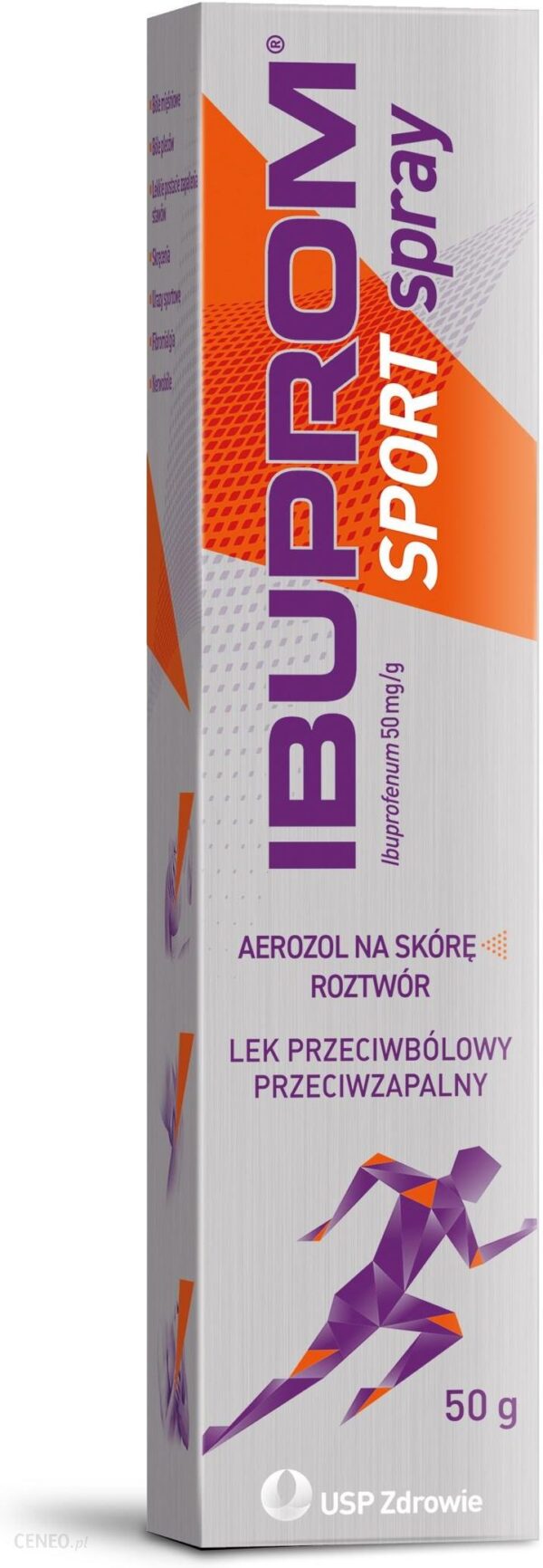 IBUPROM SPORT spray 50 mg/g, aerozol na skórę, roztwór (Ibuprofenum) Ibuprom® Sport Spray i ból pryska na zawołanie! Ibuprom Sport spray to lek przeznaczony do stosowania miejscowego na skórę. Zawiera ibuprofen, który należy do grupy niesteroidowych leków przeciwzapalnych (NLPZ). Zastosowany miejscowo na skórę łagodzi ból i zmniejsza obrzęk. Lek jest przeznaczony do szybkiego leczenia objawowego bólów mięśniowych, bólów pleców, bólu występującego w przebiegu takich chorób układu mięśniowo-szkieletowego, jak: lekkie postacie zapalenia stawów, skręcenia, urazy sportowe, fibromialgia i nerwobóle. Ostrzeżenia i środki ostrożności Jeśli objawy choroby nasilają się lub utrzymują po 14 dniach leczenia, należy zasięgnąć opinii lekarza. Nie stosować dłużej niż 14 dni bez konsultacji z lekarzem. Lek jest przeznaczony wyłącznie do miejscowego stosowania na skórę. Nie należy go stosować na skórę uszkodzoną lub w stanie zapalnym. Należy unikać kontaktu z oczami i z błoną śluzową jamy ustnej. W razie wystąpienia wysypki, należy przerwać stosowanie leku. Aby zmniejszyć ryzyko nadwrażliwości na światło, podczas leczenia ibuprofenem w postaci aerozolu podawanego na skórę, należy chronić leczony obszar przed działaniem silnych źródeł światła naturalnego lub sztucznego. Lek nie jest przeznaczony do stosowania pod opatrunkiem okluzyjnym. Po zastosowaniu leku należy umyć ręce Dzieci i młodzież Nie należy stosować leku Ibuprom Sport spray w postaci aerozolu u dzieci w wieku poniżej 12 lat bez zalecenia lekarza. Ciąża Należy unikać stosowania leku w pierwszym i drugim trymestrze ciąży. W trzecim trymestrze ciąży stosowanie leku jest przeciwwskazane. Karmienie piersią Ibuprofen przenika do mleka kobiet karmiących piersią w bardzo małych stężeniach i wydaje się niemożliwe, aby niekorzystnie wpływał na niemowlę karmione piersią. Uważa się, że dawka leku przyjmowana przez niemowlę karmione piersią jest znikoma. Płodność Nie stwierdzono wpływu leku na płodność po zastosowaniu na skórę. Co zawiera lek Ibuprom Sport spray Substancją czynną jest ibuprofen. 1 g roztworu zawiera 50 mg ibuprofenu. Pozostałe składniki to: alkohol izopropylowy, alkohol benzylowy, glikol propylenowy, sodu wodorotlenek, woda oczyszczona, gaz pędny: azot. Przed użyciem zapoznaj się z ulotką!