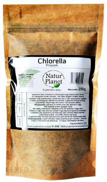 zawiera suszone algi słodkowodne w formie tabletek. chlorella polecana jest do stosowania przy osłabieniu kondycji fizycznej.