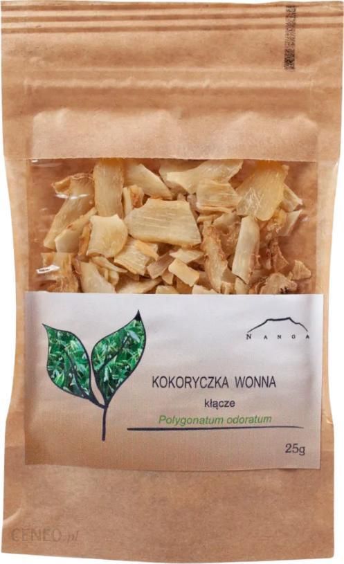 Kokoryczka kłączePolygonatum odoratumProducent: NangaForma: kłącze cięteKraj pochodzenia: ChinyPojemność: 25gSkład: Kokoryczka wonna – kłącze 100%Zdrowie: Prawidłowy cukier, Zdrowe serceZastosowanie: pielęgnacja ciała, rany i otarcia, trądzikOstrzeżenia: nie stosować w ciąży, nie stosować podczas laktacji