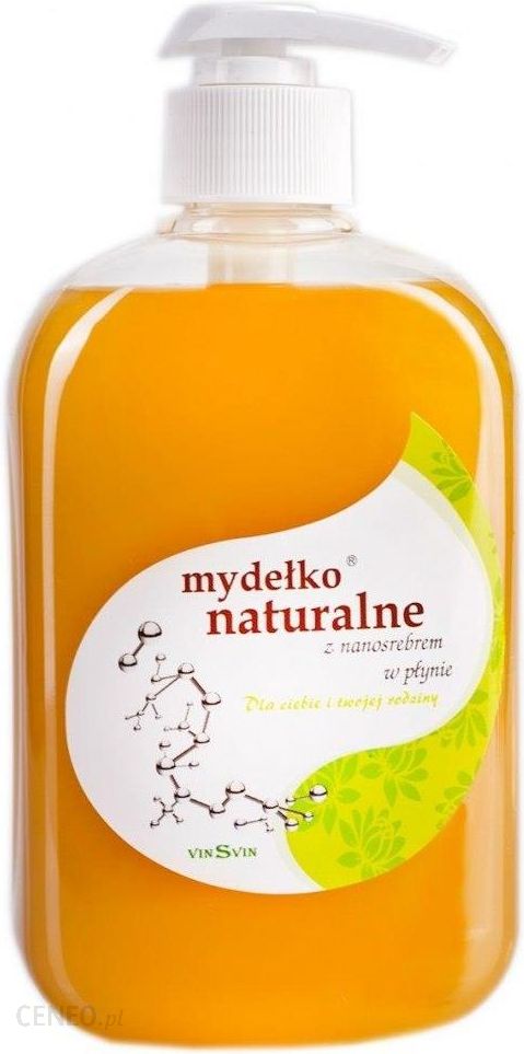 VINSVIN MYDEŁKO NATURALNE Z NANOSREBREM W PŁYNIEMydełko Naturalne w płynie zapewnia maksymalną ochronę przed powstawaniem chorób skórnych oraz przywraca skórze łagodność, delikatność, piękno i naturalnie zdrowy wygląd. Właściwości:zapobiega rozwojowi zmian skórnychskutecznie pomaga w leczeniu już istniejących infekcji bakteryjnych, grzybiczych i wirusowych.nie zawiera detergentów, barwników, kompozycji zapachowych oraz innych niekorzystnych substancji uczulających.jest idealne przy nadwrażliwości na mydła zawierające w/w składniki.nie wywołuje reakcji alergicznych, nie wykazuje właściwości uczulających, nie podrażnia i nie uczulanie wysusza i nie podrażnia skóry.tworzy na powierzchni skóry warstwę ochronną zabezpieczającą przed bakteriami, drożdżami, grzybami i wirusamizapobiega powstawaniu stanów zapalnych skóry. i łagodzi już powstałewspomaga redukcję trądzikudziała antybakteryjnepomaga zachować naturalne pHdokładnie oczyszcza skóręzapobiega powstawaniu grzybicy stóp i paznokcizapobiega powstawaniu nieprzyjemnego zapachu potuwspomaga gojenie się ranWSKAZANIAMydełko naturalne z nanosrebrem przeznaczone jest do mycia i codziennej pielęgnacji skóry całej powierzchni ciała, w tym skóry głowy, pach, pachwin oraz higieny intymnej.