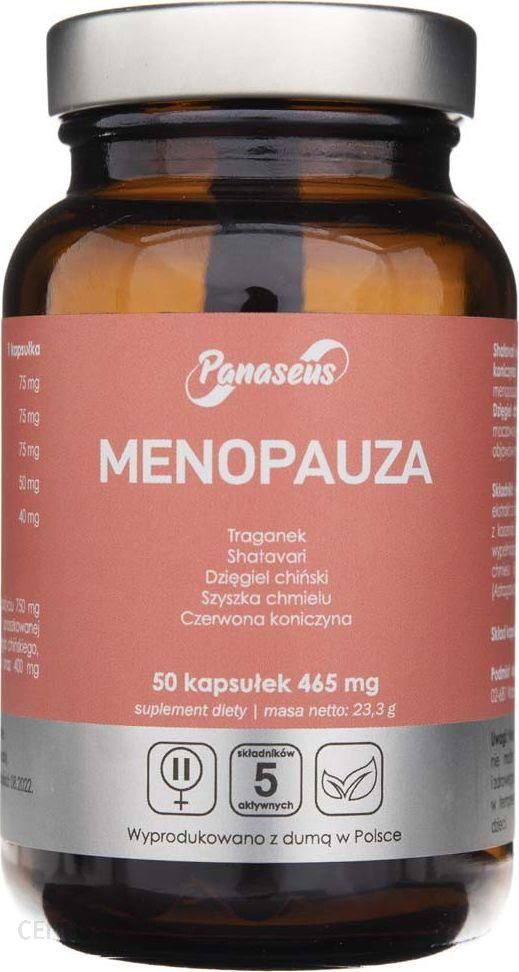 Panaseus Menopauza – suplement diety dla dojrzałych kobiet w okresie menopauzy, zawierający shatavari, czerwoną koniczynę, szyszkę chmielu i traganek. Produkt przeznaczony dla osób dorosłych.Produkt odpowiedni dla wegetarian i wegan.